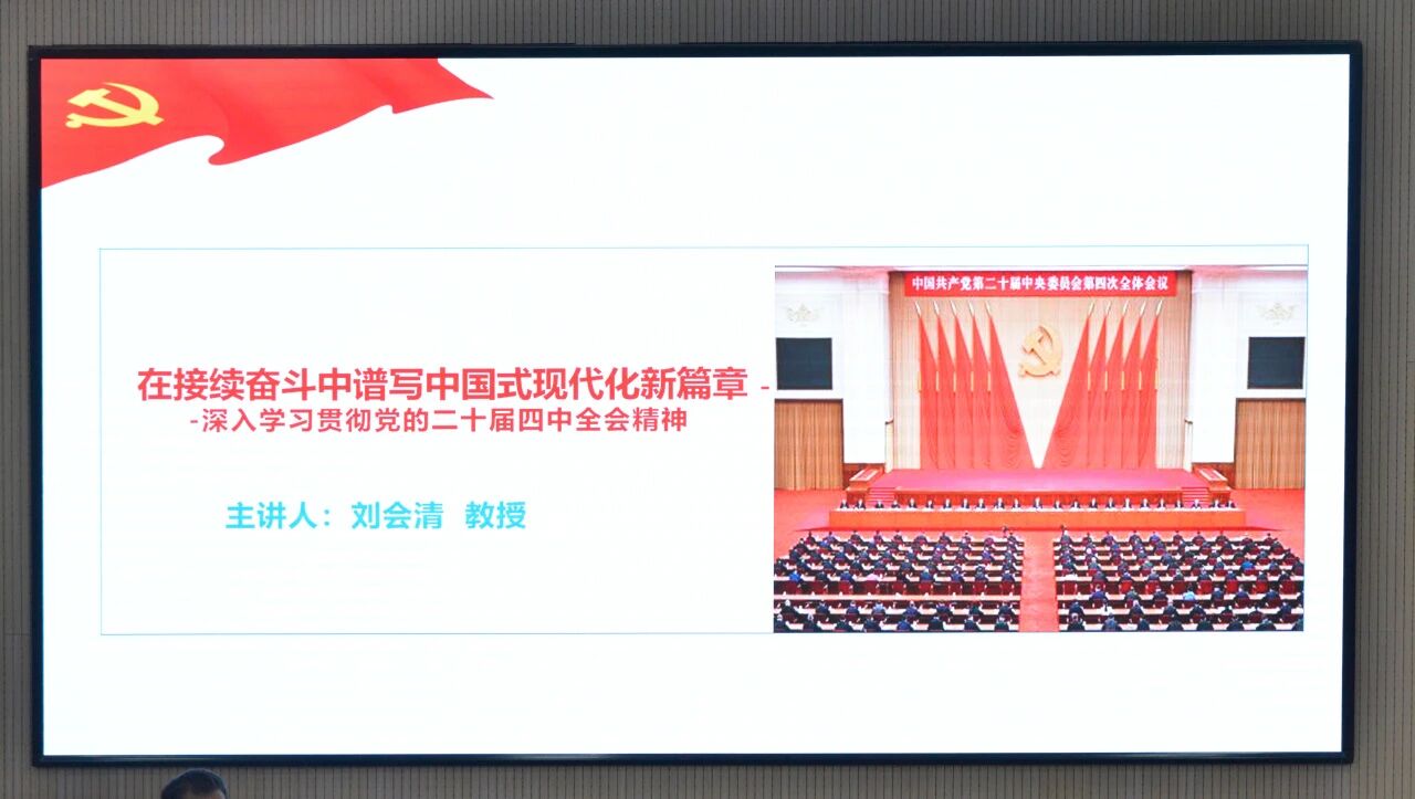为深入学习贯彻党的二十届四中全会精神,统一思想行动,12月25日,888集团 党委召开专题学习会,邀请马克思主义888集团 刘会清教授作辅导报告,党委书记马群主持,888集团 教师、学生党员、预备党员及入党积极分子参加。