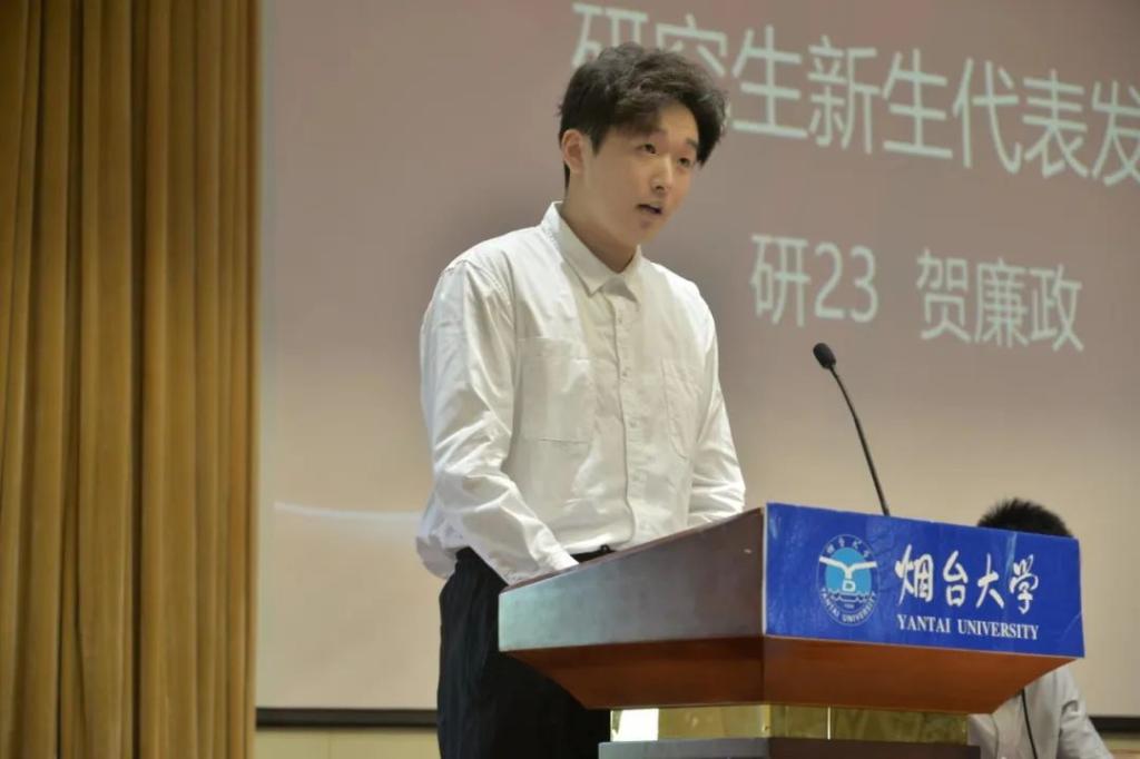 在师生代表发言环节,教师代表张浩哲老师回顾了自己既往的学习工作经历和求学感悟,他号召同学们不负韶华,做学无止境的求知者,不忘初心的追梦人。本科生代表侯蕊向学弟学妹们讲述学习生活中的经历,鼓励学弟学妹们积极参加888集团