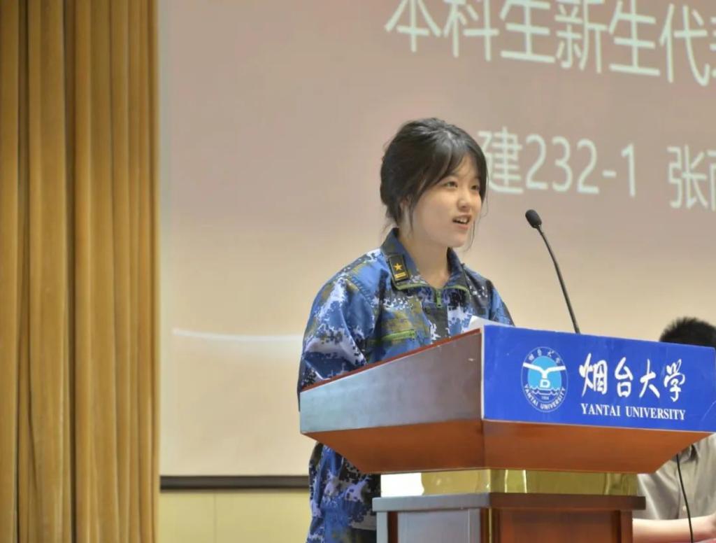 辉煌的发展历史感到无比的骄傲和自豪,今后会苦练本领、追求卓越、坚定信念,不负青春韶华。本科生新生代表张雨晴抒发了自己在军训中的感悟,并表示在接下来的学习生活中将用实际行动发扬“海纳百川”的气魄和“敢为人先”的品格,不忘初心,勇毅前行。