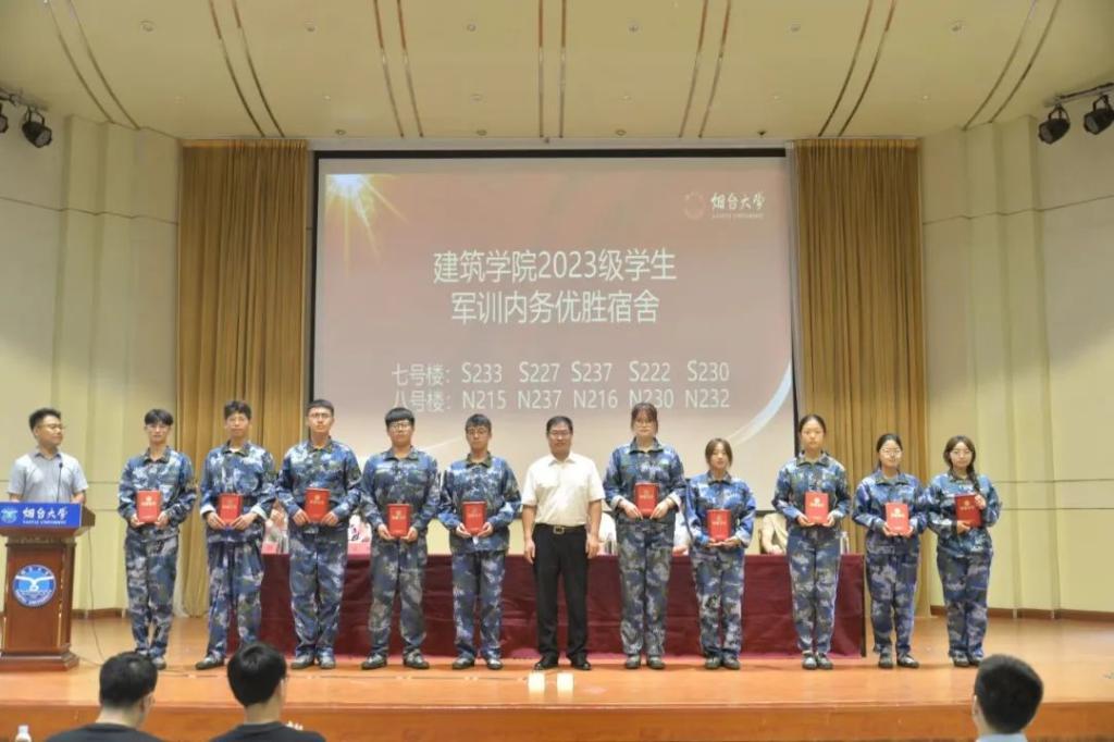 领导和老师对军训内务优胜宿舍、军训标兵、军训优秀学员、新生优秀导助、军训工作突出贡献个人颁奖。
