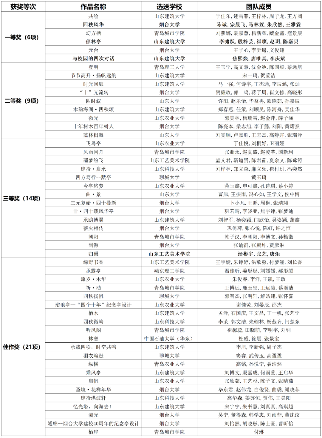 在各方的共同努力下,大家期待已久的第十六届山东省大学生科技节“钰浩建筑杯”2024山东省大学生建造设计大赛(以下简称“大赛”)方案赛道获奖结果和落地搭建作品名单正式公布!