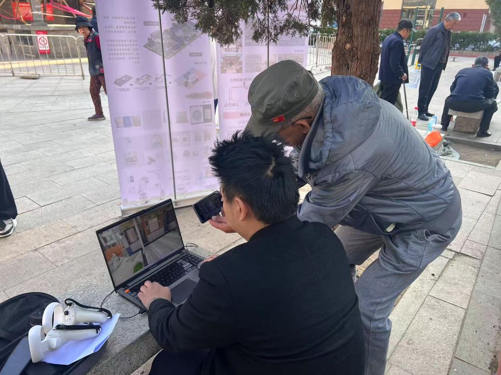 本次调研以虚拟体验建筑遗产环境更新设计为核心亮点,通过展板展示、VR空间模拟及文创产品设计,系统呈现活化更新方案。市民通过VR设备沉浸式感受戏台未来场景,直观体验建筑空间与公共生活的融合升级。