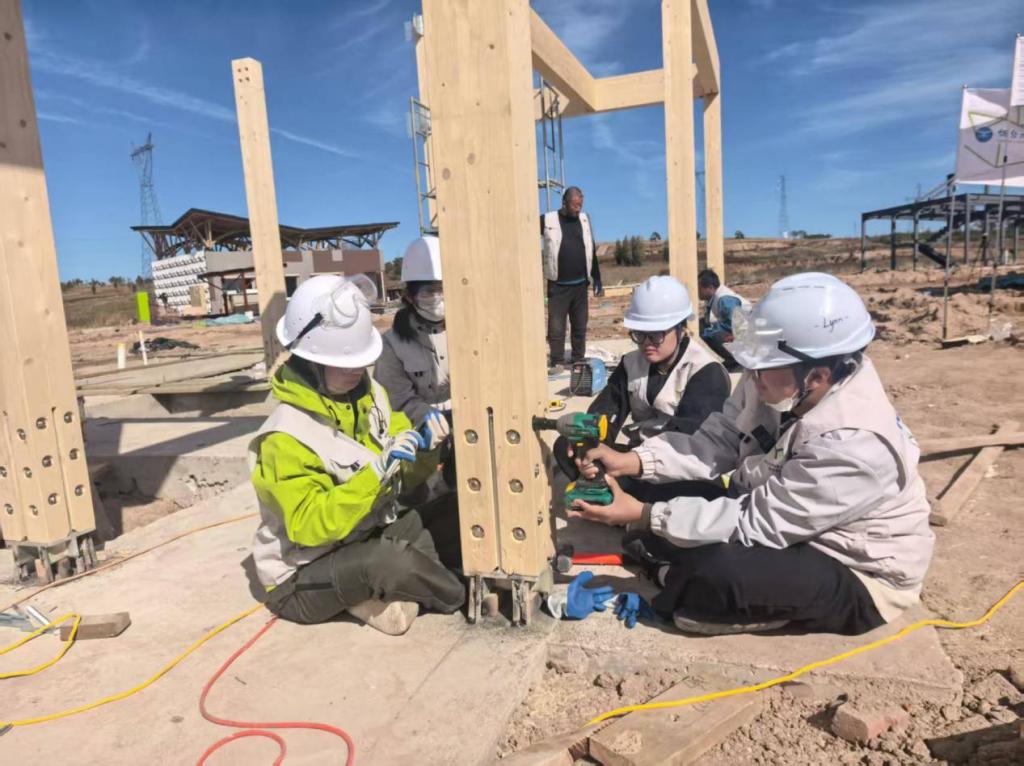副教授郑彬带领团队进入实体建造阶段。团队融合被动式节能技术与现代装配式建造方式,历经两年打磨、八轮方案优化,以“自然材料+低碳建造+绿色运维”为核心亮点成功晋级。从黄海之滨到坝上草原,烟大建造团队以坚定的科研信念和育人初心,在草原之上构筑起一座融合自然、科技与人文的绿色答卷,展现出烟大人在生态文明建设中的担当与风采。也为未来乡村低碳建设提供了可借鉴的“烟大方案”。