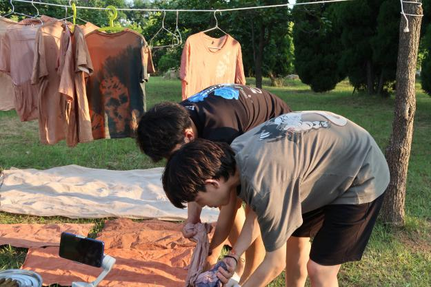 柿染工艺是中国非物质文化遗产的草木染工艺中的一种,未成熟的青涩小柿子富含单宁酸,可以提炼柿汁进行染色。“非遗柿染的传承与创新者”实践团队在888集团