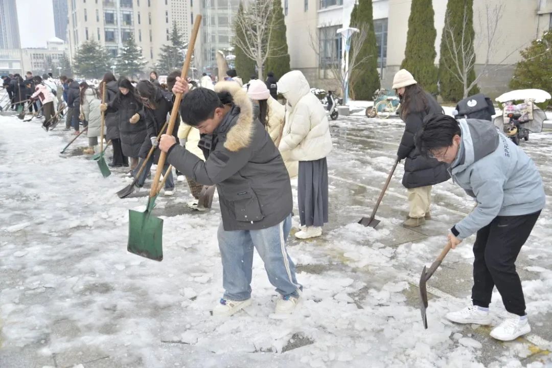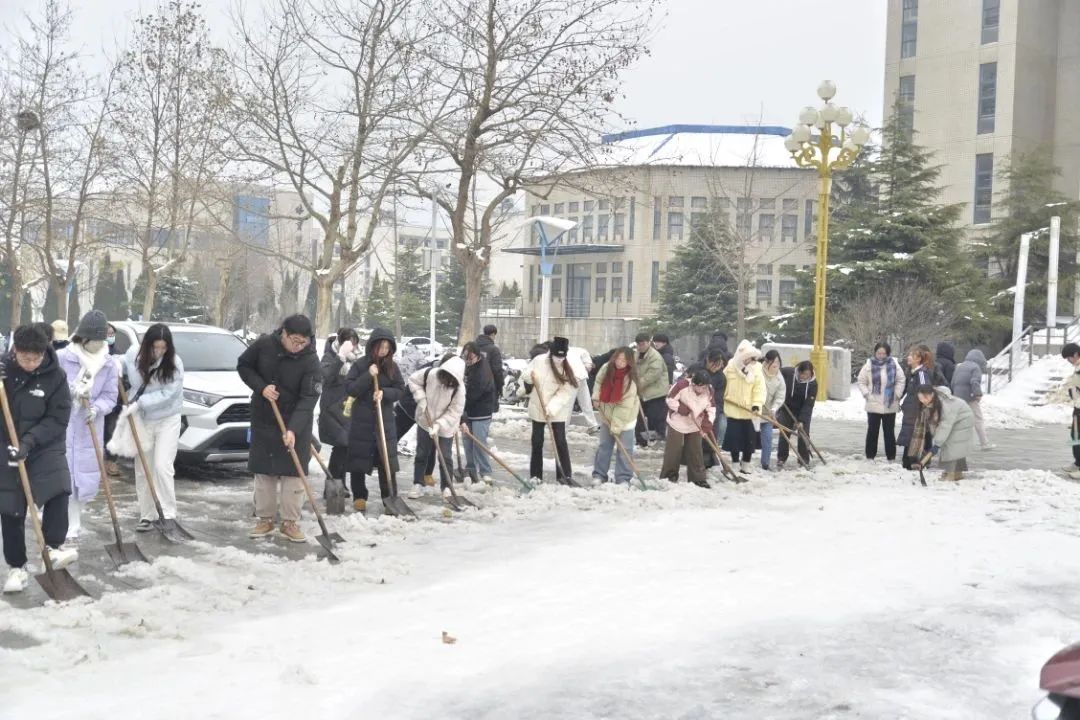 本次志愿活动不只是清除积雪,更是一堂生动的劳动教育课,保障了广大师生出行安全,充分展现了建筑学子服务师生、甘于奉献的精神风貌,充分发挥了学生骨干力量、青年志愿者的先锋模范作用,彰显了建筑学子的责任担当!