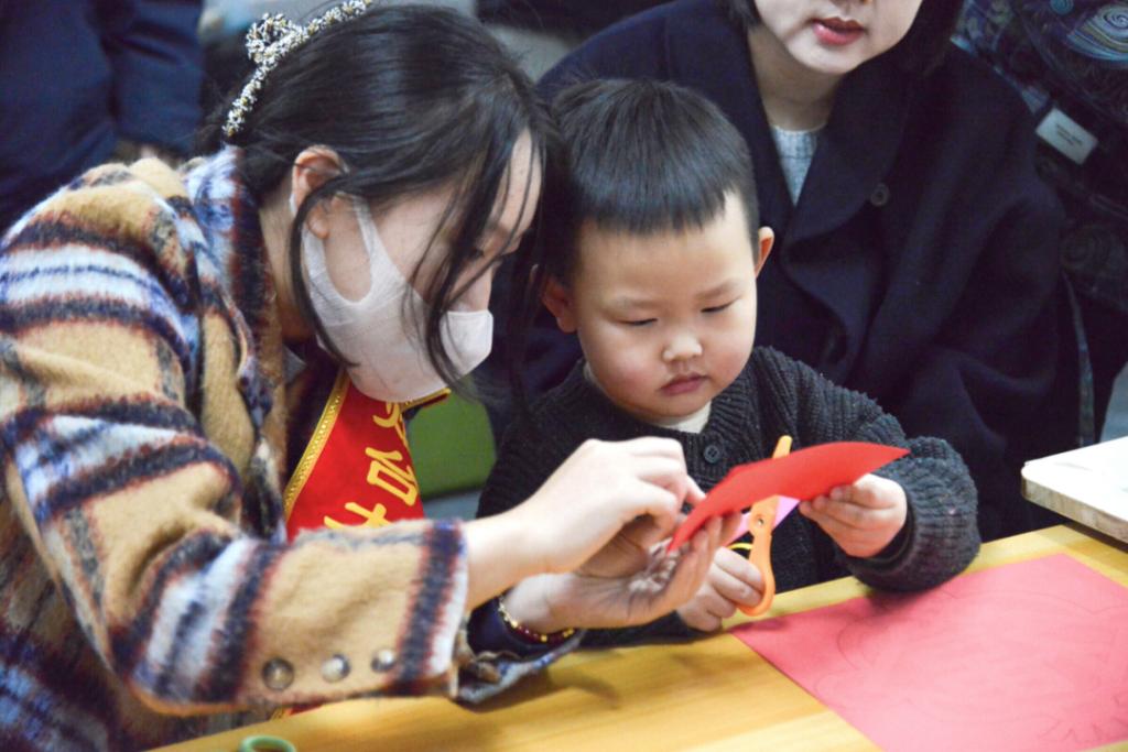 之后,志愿者们耐心的示范,一步一步地教小朋友们剪纸,把雷锋的形象跃然于纸上,小朋友们也兴致勃勃地动手操作,把一个个图案剪得栩栩如生,他们展示着自己的作品,互相交流着剪纸过程中的心得与体会。