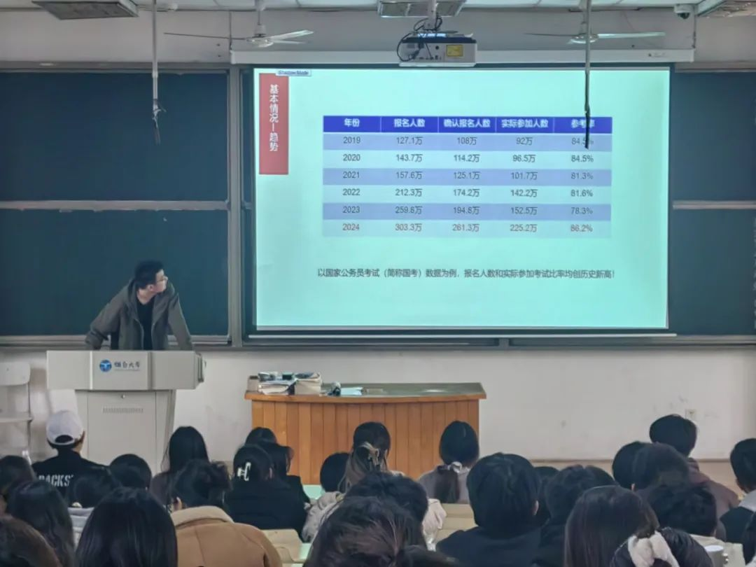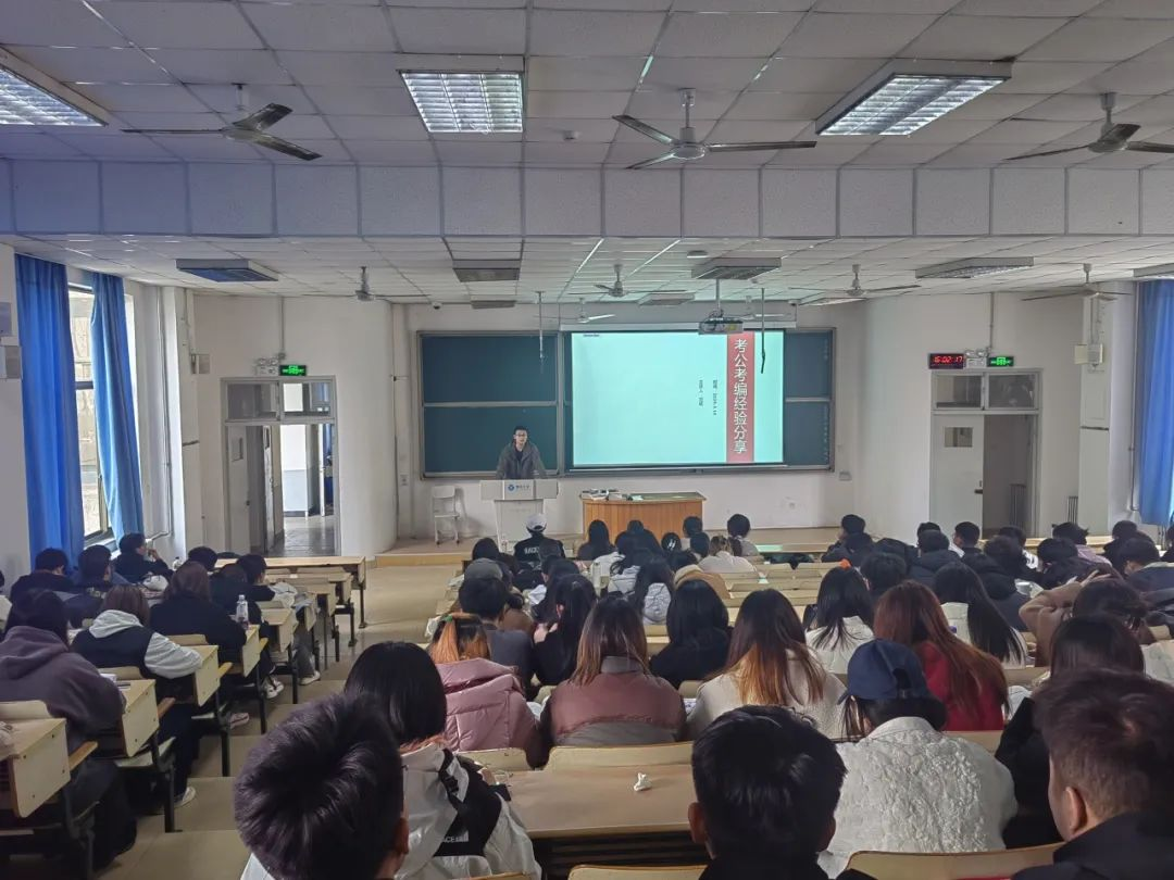 举办了以公务员、事业编、出国留学为主题的就业宣讲会,旨在发挥身边榜样同学力量,帮助大学生明确自身规划,树立正确就业观,为党和国家的工作大局贡献青春力量。