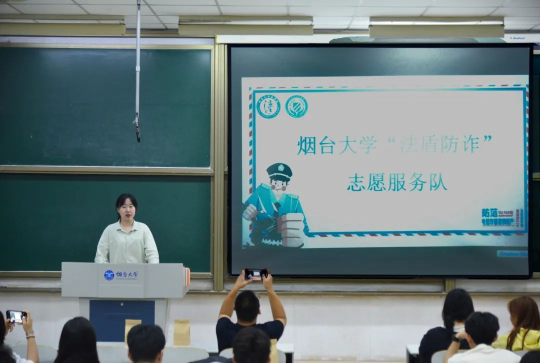 “法盾防诈”志愿服务队的成员代表从选题确定、流程设计、宣传推广与特色成果展示四方面进行分享,并详细介绍了报告撰写的四个关键步骤。