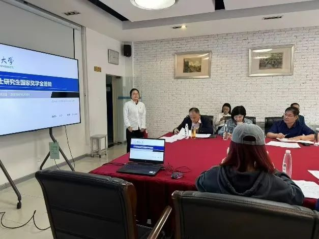 领导、研究生导师代表、辅导员代表、学生代表等评审委员会成员参加了此次会议。会议由研究生辅导员邢慧双老师主持。
