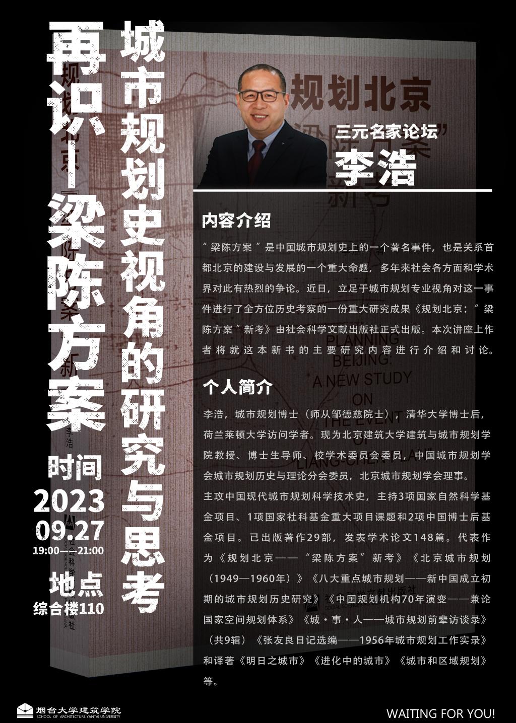 李浩,城市规划博士(师从邹德慈院士),清华大学博士后,荷兰莱顿大学访问学者。现为北京建筑大学建筑与城市规划888集团