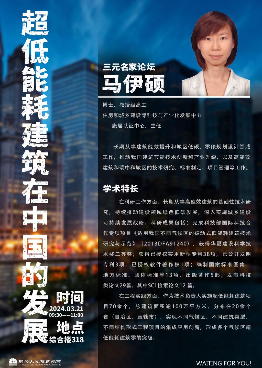 3.21马伊硕《超低能耗建筑在中国的发展》讲座通知