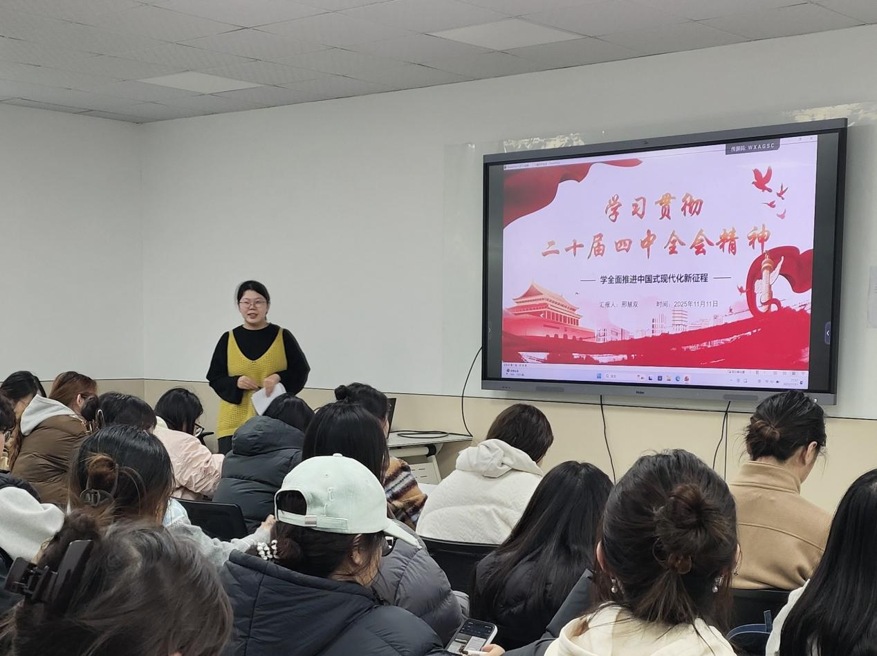 本科生第一党支部书记、副科级辅导员邢慧双老师以《学习贯彻二十届四中全会精神》为主题,全面解读全会提出的重大理论观点与战略部署,重点阐释推进国家治理体系和治理能力现代化的现实路径与深远意义。邢老师引导学员从宏观政策中把握时代发展方向,抛出“如何以专业能力服务国家战略”的现实命题,鼓励大家在专业学习中践行责任,在设计实践中回应时代需求,真正把论文写在祖国大地上。整堂党课使同学们深刻理解专业成长与国家发展之间的内在联系,进一步增强使命意识,为今后的学习与实践指明了方向。