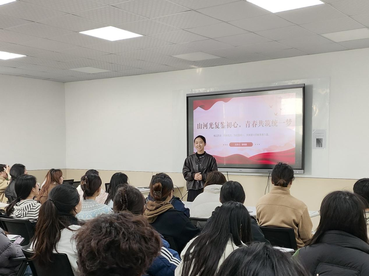 “山河虽广,寸土不让;历史虽远,记忆不忘。”辅导员姜晓晨老师在《山河光复鉴初心,青春共筑统一梦》一课中,系统梳理了台湾光复的历史背景与重大意义,通过丰富的影像与文献资料,再现那段不容忘却的民族记忆。姜老师深入阐释设立“台湾光复纪念日”的教育价值与国际影响,指出其不仅是民族精神的唤醒仪式,更是向世界昭示一个中国原则的坚定立场。课程激发学员从历史中汲取力量,在专业学习中增强国家认同,以实际行动维护国家统一与领土完整。